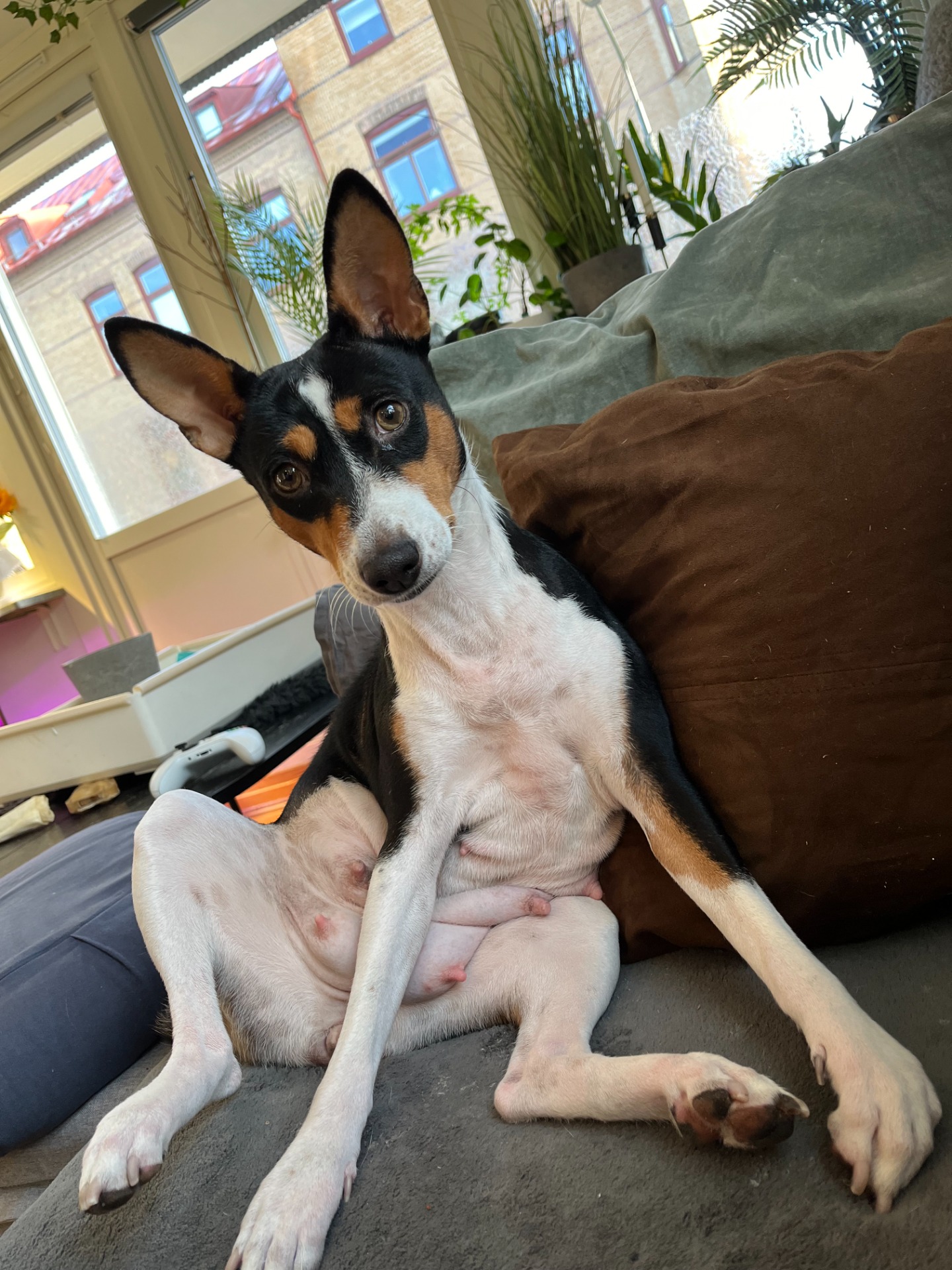 Ofelia är husses tjej till 110%. Hon är en mjuk men envis dam med starka åsikter och ett svängigt humör- ibland är hon en liten bebis som bara vill hålla öm ögonkontakt och skeda, och ibland tror hon att hon är en raptor.. Det är svårt att inte skratta när raptor-Ofelia kommer fram för hennes gränsdragning kan komma från ingenstans och låta mycket värre än det egentligen är. Raptor-Ofelia kommer aldrig heller fram när hon är rädd på riktigt, utan det är en liten show hon drar på för oss här hemma. Hon är spontan, glad, social och kul på fest, men föredrar fikapauser över långpromenader. Hennes hjärna verkar arbeta dubbelt så fort som killarnas och hon kan bara göra saker i jättehögt tempo eller inte alls. Hon fullkomligt sprutar fram känslor genom ansiktsuttryck, morr och joddlande, och det är en fröjd att se världen så färgstarkt genom hennes ögon. Hennes främsta styrka är nosen och hon är duktig på självständigt arbete som sökaktiviter eller hinderbanor. Ofelia har fått två kullar och blir förhoppningsvis mormor till hösten. Man hade kunnat tro att det innebär ett visst mått av mognad, men nä- hon är och kommer alltid förbli en liten lillasyster.